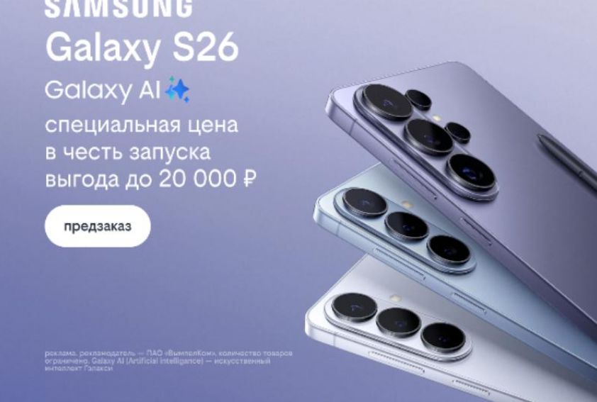 Билайн начал принимать предзаказы на новые Samsung Galaxy S26 с выгодой до 20 000 рублей. Узнайте больше на beeline.ru.