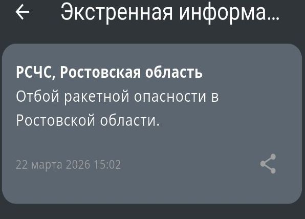 Утром 23 марта в Ростовской области вновь была объявлена опасность от беспилотников, после отмены режима повышенной внимательности.