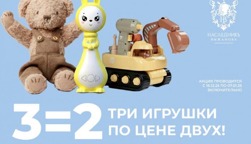 С 16 декабря по 7 января вы можете купить три игрушки по цене двух в магазинах «Наследникъ Выжанова» в Воронеже.