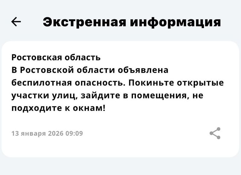 В Воронеже утром 12 января была объявлена угроза атаки БПЛА, которая впоследствии была отменена силами ПВО. Губернатор призвал жителей соблюдать меры предосторожности.