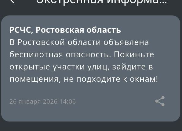 В Ростовской области объявлен желтый уровень опасности из-за угрозы использования БПЛА. Экстренные службы приведены в готовность, и гражданам рекомендовано следить за официальными сообщениями.
