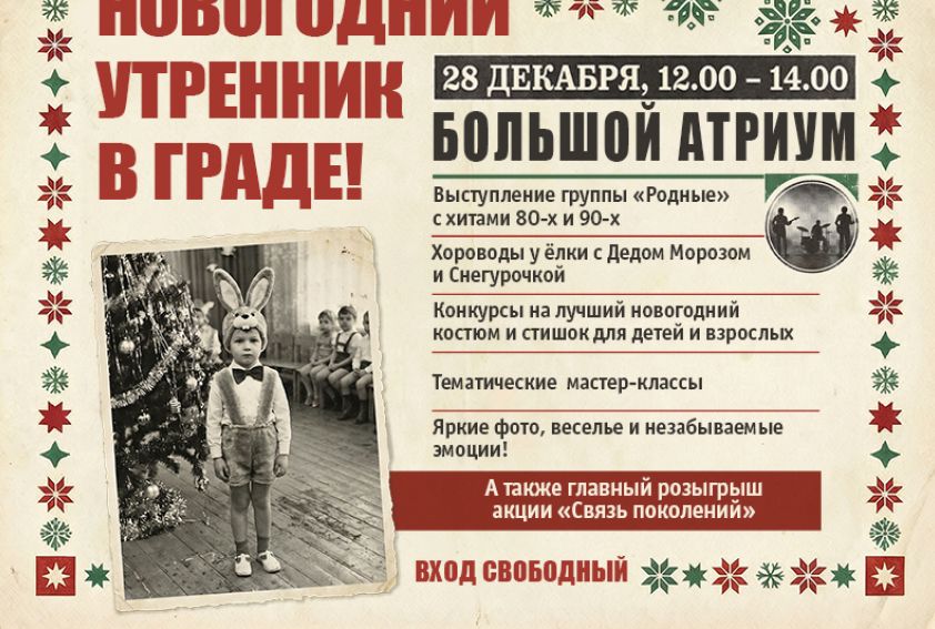 Бесплатный новогодний утренник в стиле СССР пройдет в Сити-парке «Град» в Воронеже 28 декабря. Вас ждут хороводы, конкурсы, мастер-классы и живая музыка.