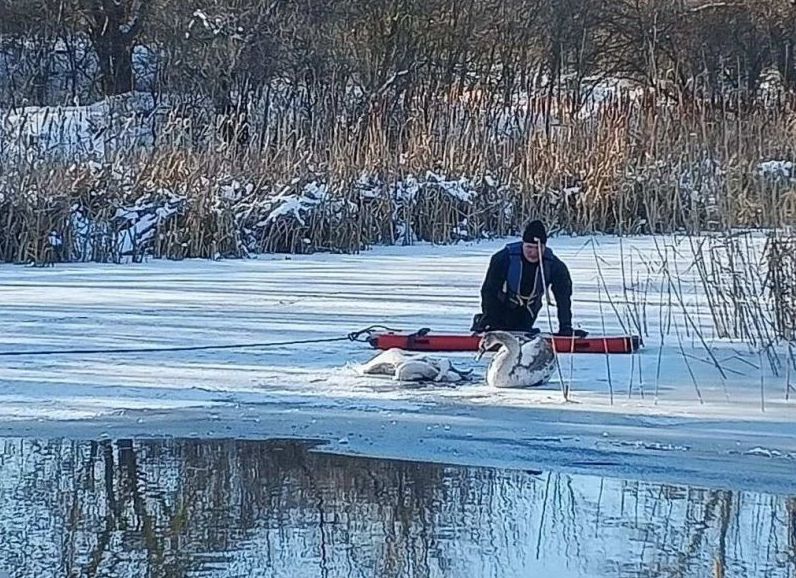 В Ростовской области спасли лебедя, не желавшего покидать мертвого сородича
