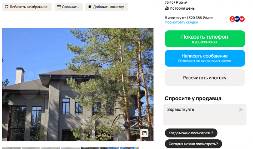 Роскошный коттедж площадью 1300 квадратных метров в Яменке, недалеко от Воронежа, выставлен на продажу за 99 миллионов рублей. Объект включает в себя бассейн, фитнес-зал и другие премиальные удобства.