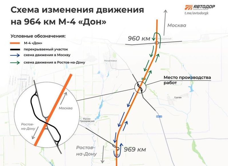 С 27 января на участке трассы М-4 «Дон» в Ростовской области изменится схема движения из-за реконструкции путепровода. Новые маршруты и ограничения скорости будут введены на 964-м километре.