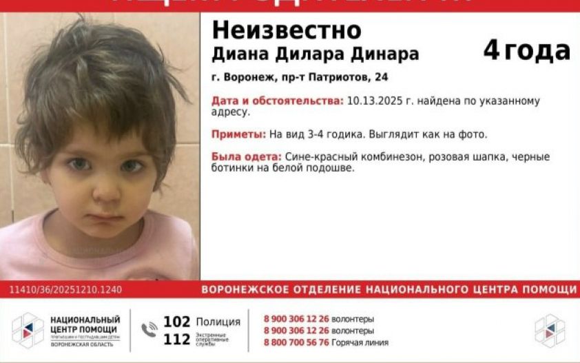 Волонтеры «Лиза Алерт» и сотрудники полиции помогли найти четырехлетнюю девочку, которая потерялась в Воронеже. Ребенок был без присмотра всего час.