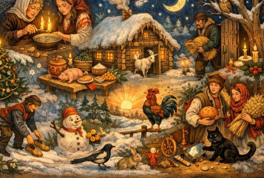 Узнайте о старинных новогодних и рождественских приветах и обрядах, которые практиковались нашими предками. От богатого стола до гаданий на суженого — откройте для себя мудрость народной традиции.