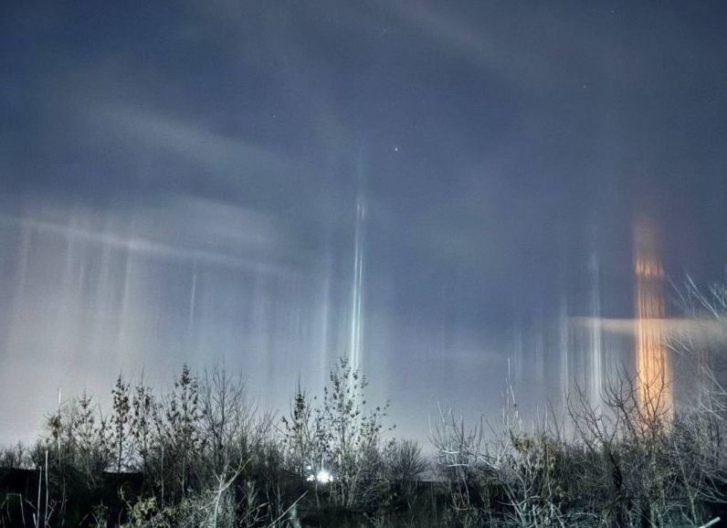 Удивительное явление над Красным Сулином: Искрящиеся световые столбы