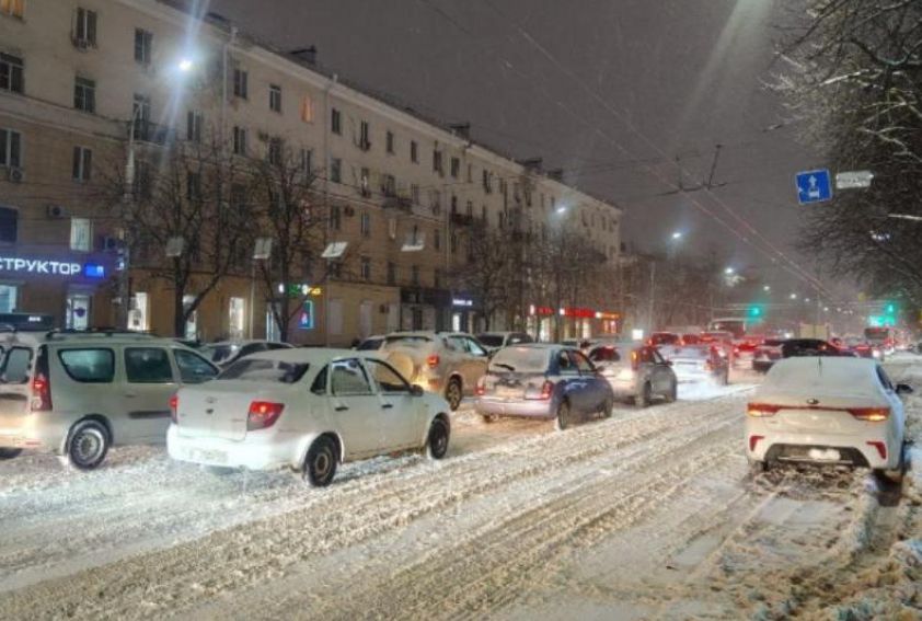 Пробки в Ростове из-за продолжительного снегопада достигли критического уровня