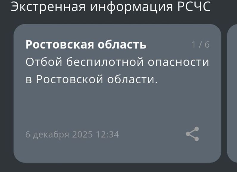 В Ростовской области 6 декабря была отменена угроза падения беспилотных летательных аппаратов. Жителям рекомендовалось соблюдать меры предосторожности.