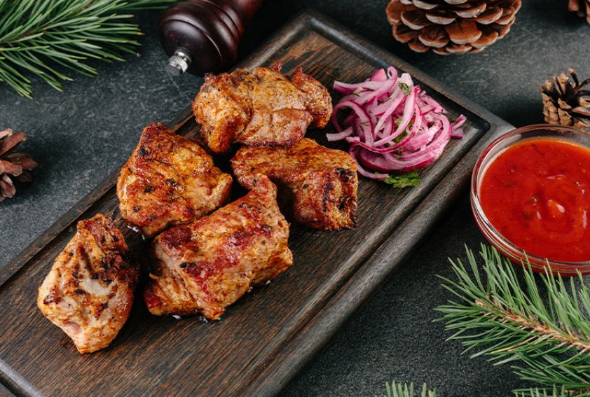 Закажите вкусный шашлык и другой ужин на Новый год прямо с доставкой к вам домой в Воронеже. Удобный предзаказ и простота заказа на сайте.