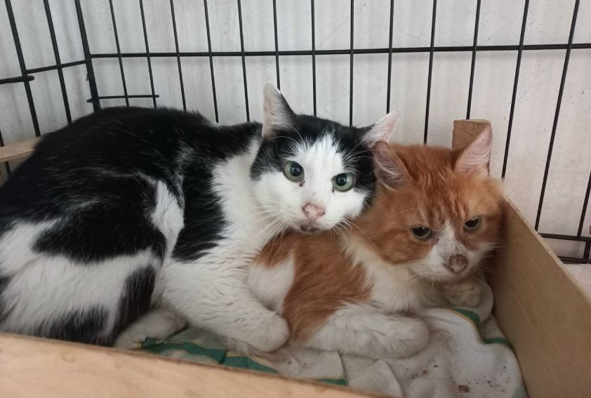 В Воронеже волонтеры нашли двух истощенных кошек в квартире, где нашли тело мертвой пенсионерки. Кошкам требуется срочное лечение и медицинская помощь.