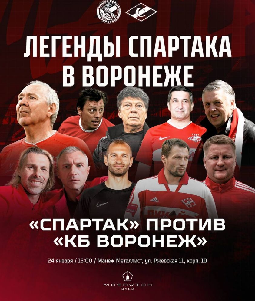 24 января в воронежском манеже «Металлист» легендарные игроки «Спартака» проведут товарищеский матч с фанатской командой «КБ Воронеж».
