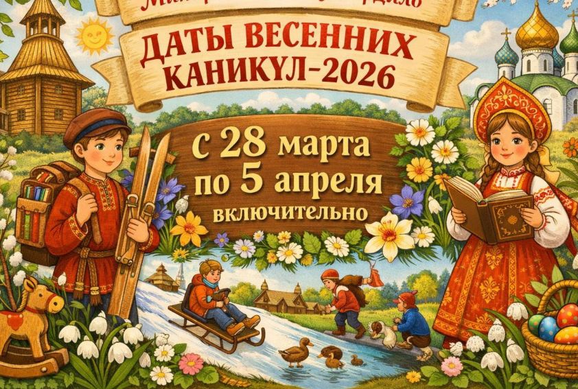 Министерство просвещения утвердило рекомендации для весенних каникул в общеобразовательных школах в 2026 году, предложив период с 28 марта по 5 апреля как оптимальный.