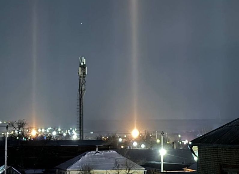 Жители Ростовской области стали свидетелями удивительного явления — световых столбов. В Батайске и других городах было замечено это уникальное атмосферное явление в условиях сильных морозов.