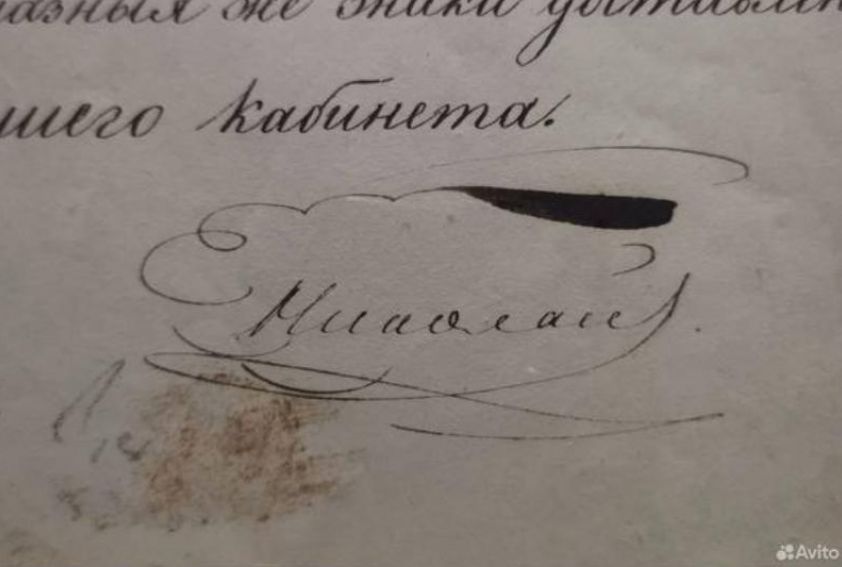 Уникальный документ с автографом Николая I выставили на продажу в Воронеже за 130 тысяч рублей. Продавец гарантирует подлинность.