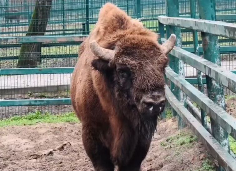 Зубр Мураш временно переехал в зоопарк «Лесная сказка» в Барнауле. Специалисты обеспечили животному комфортные условия транспортировки.