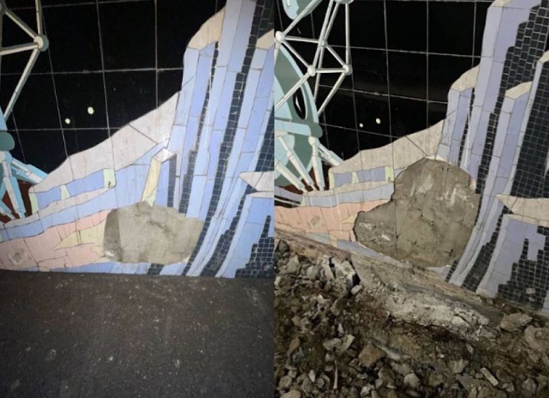 В центре Ростова установлена причина частичного повреждения мозаичного панно в подземном переходе. По информации редакции DonDay, отвалившаяся плитка являлась результатом обрушения перегородки, произошедшего в начале марта. Проблемы с ремонтом подземных переходов, содержащих мозаичные панно, внесенные в реестр ОКН, обсуждаются уже не первый год. Общественники выражали опасения, что ремонтные работы могут привести к разрушению мозаичных панно. Была разработана проектно-сметная документация, в которой предусматривалось использование метода внутренней гидроизоляции для проведения ремонта. Подготовительные работы к ремонту начались еще в конце февраля. Специалисты огородили подземное пространство массивным ограждением. В марте градозащитники сообщили об увеличении площади поврежденной плитки. Выяснилось, что причиной стало неосторожное движение ограждения, которое было толкнуто прямо на стену с мозаикой. Мозаичное панно планируется восстановить.