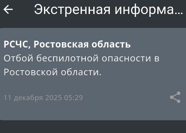 11 декабря в Ростовской области был снят режим беспилотной опасности. Уведомление о повышенной угрозе от региональной службы ЧС поступило около 5:30 утра. Жителей региона предупреждали о возможном падении объектов с неба еще 10 декабря.
